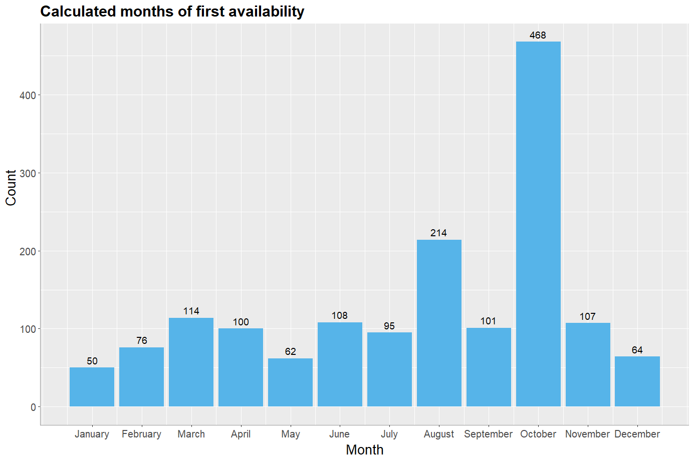 After the analysis of the first ratings showed that they are often given before the game is released, the calculated availability of a game should be closer to the official release date. Chart 2 shows the comparison of the official date with the calculated availability.